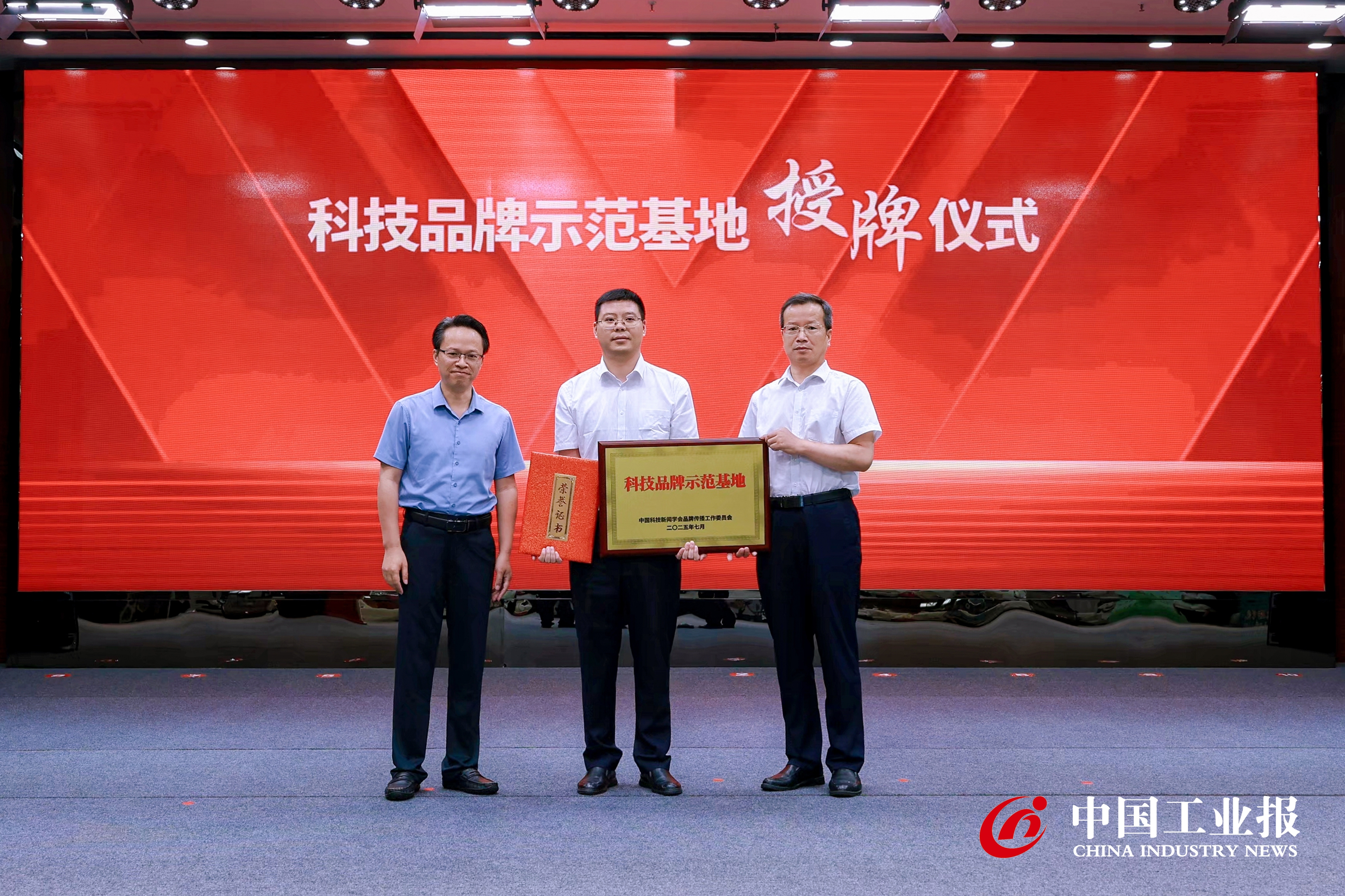 中國(guó)科(kē)技(jì)新聞學會(huì)品牌傳播工(gōn<→λ±g)作(zuò)委員(yuán)會(huì)向£€江蘇東(dōng)強授予“科(kē)技(jì)品牌示範基地(dì )”榮譽牌匾和(hé)證書(shū)。